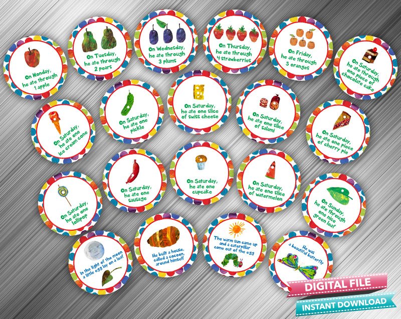 Very Hungry Caterpillar Cupcake Toppers – He Ate Each Days